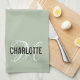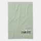 Elegant Sage grönt kökshandduk med ett vitt manusmonogram och ett svart namn. Anpassa med ditt första och namn.