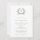 Det här är en elegant, formell och klassisk botanisk vapensköld och en bröllopsinbjudan i grönt. På baksidan av kortet finns en ställe för fotot och en QR-kod för ytterligare information om webbplatsen.