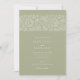 Den här inbjudan från elegant bröllop innehåller en förfinad bakgrund för sage-grönt med invecklade elfenben-blommönster som erbjuder en perfekt blandning av sofistikering och modernt stil. De ömtåliga motiven på blommigten både på kortets framsida och baksida skapar ett sammanhängande och lyxigt utseende och skapar det som ett perfekt val för par som vill ha en tidlös utformning av contemporaryn. Inbjudan kompletteras på ett utmärkt sätt med subtila monogram, vilket ger en personlig beröring till detta fantastiska biet. Perfekten för formellt bröllop kommer denna inbjudan att ange tonen för en elegant och ett minnesvärt firande.