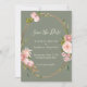 Elegant Sage Grönt Rosa Blommigt Bröllop Spara Datumet