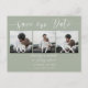 Elegant Sage grönt script 3 foton spara datum Vykort