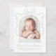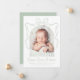 Välkomna din lilla med det här eleganten-kortet för fotofödelseanmälan. Baby:s bågformade foto ramas in av en känslig, handritad båge och ett band i en grönt på en lugnande sida mot en vit bakgrund som skapar en modern och säker design. Anpassa fronten med baby namn i charmerande skript, födelseinformation och namn. Baksidan ger utrymme för ett andra foto och ett uppriktigt personligt meddelande, skapar det vara en tidlös nyckelfråga för familj och vänner. Det här är perfekt för pojke, flickor eller någon som söker en gender-neutralt stil.