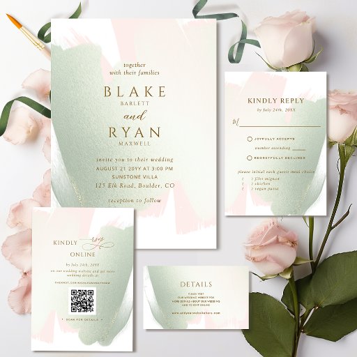 Elegant Sage och penseldrag Bröllop Inbjudningar