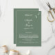 Ett vackert elegant, högtidligt skript, bröllop-design med en oliv grönt bakgrund färg. En unik design som användor ett typsnitt för kalligrafi-bröllopsinbjudan och ett hand plockade greenery löv gren. En formell kalligrafi av skript med oliv grönt toner. Ett resande programkort för elegant bröllop med klassisk traditionell inslag. Det finns också möjlighet att matcha bröllopsinbjudningar och andra artiklar i kontorsartiklar.
