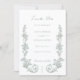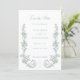 Förhöj din speciella dag med denna eleganta, salviagröna klassiska blomdesign med barockinspirerade rullar med kolonner av toile-rosor och lövverk. Inkluderar textfält, QR-kod och fotomall.