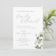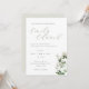 Specialdesignad bröllopsinbjudan med delikat kalligrafi med elegant salvia grönska och vit blomdesign.