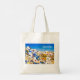 Ta med dig skönheten i Egeiska havet var du än går med den här bedövande Santorini-temade väskan. Det är perfekt för att handla, resa eller kasta någon biet i Grekland. Det är en ikonisk vitaminerad byggnad, blå kuster och en markutsikt.