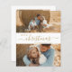 Modern, minimalistisk, Elegant-skript 2 Photo Collage-Helgdag Thin Card i guld och vitt. Det här snygga, tydliga minimalistiska, två (2) familjekortet för fotobilder har en söt helgdag-fotokollage och säger "God jul"! Textskriptet "Jul" i hälsning är skrivet i en handskrift som snabbt byts ut mot svan. På baksidan ett foto och ditt meddelande. Hälsningskort för söt till din familj och dina vänner på Winter-Julhelgen.