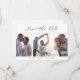 Med det här elegant-skriptet 3-fotomallen sparar du datumkortet som perfekt för ett enkelt bröllop. Den minimalistiska svartvita designen har romantisk typografi i finare med modernt glam stil. Anpassade i alla färg. Behålla designen minimal och klassad som den är, eller anpassa den genom att lägga till egna bilder och teckningar.