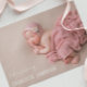 Elegant Modern Minimalistisk Snyggt 3 Photo Collage Birth Notification Card introducerar flicka, pojke, ett skript med vit elegant. Anpassa det här vackra kortet med 3 foton av ditt nyfödda baby. Ersätt exempelbilderna med dina egna. Foton från https://pixabay.com/es/users/bongbabyhousevn-15950077/.