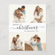 Modern, minimalistisk, Elegant-God jul-skript 4 Photo Collage-Helgdag Thin Card. Det här snygga, tydliga, minimalistiska, fyra (4) familjekortet för foto innehåller en söt helgdag-fotokollage och säger "God jul"! Textskriptet "Jul" i hälsning är skrivet i en handskrift som snabbt byts ut mot svan. På baksidan ett foto och ditt meddelande. Hälsningskort för söt till din familj och dina vänner på Winter-Julhelgen.