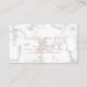 Elegantens företagsförmånskort med titeln i faux ro guld med dekortecken i ett handskript över en marmor bakgrund. Mallen innehåller tio slå och kontaktinformationen finns på baksidan. Den här enkla och feminina designen är underbar för en konstgjord konstnär, hårstilist, lash-tekniker, skönhet-/nagelsalon eller något kvinnoägt företag.