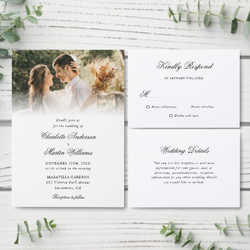 Elegant Script Black and White Bröllop Inbjudningar