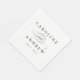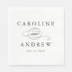 En klassisk bröllop-napkin med kalligrafiskriptet par namn och elegant och med händelsemedatum.