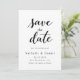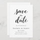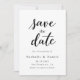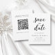 Den här eleganten är det svartvitt bröllop-spara-till-datum-kortet är perfekt för ett modernt bröllop. Den enkla designen har elegant för svart calligrafi på en ren vit bakgrund. Kortet innehåller också en QR-kod för bröllop webbplats på baksidan.