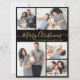 Simple Modern Elegant Calligraphy Black and Guld 5 Photo Collage God jul Script Helgdag Card. Den här sjutna, minimalistiska, viskösa 5 (5) fotokortmallen Julhälsningar ett söt-rutnätsfotokollage och säger "God jul"! Texten "God jul" hälsning är skriven i ett vackert handskrivet teckensnitt som snabbt byts ut mot svan i guld mot svart bakgrund i färg. På motsatt sida med din hälsning-meddelandemall med lite hjärtskugga på vit och en vågrät fotomall. Söt hälsningskort för din familj och dina vänner under julens Julhelg.