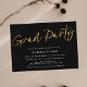 Det här är en inbjudan till studentfest för elegant och chic. Den användor en modern och snyggt design i klassisk svartvitt med ett handskript i guld. Kontakta designern om du vill ha några frågor om den här designen.
