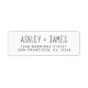 Chic, modern och enkel returadressetikett för bröllop med namn i handskript i off-black elegant på vit bakgrund. Lägg bara till namn och adress. Enbart designad för dig av Lycklig Dolphin Studio. Kontakta oss på happydolphinstudio@outlook.com om du behöver hjälp eller matchande produkter. Vi är lycklig för att hjälpa dig att göra bröllop till den vackraste dagen!