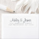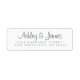 Chic, modern returadressetikett för svart och vitt bröllop med namn i handskrivet skript för svartvit elegant med kalligrafi och typografi för snyggt på vit bakgrund. Lägg bara till namn och adress på det osa klistermärket. Enbart designad för dig av Lycklig Dolphin Studio. Kontakta oss på happydolphinstudio@outlook.com om du behöver hjälp eller matchande produkter. Vi är lycklig för att hjälpa dig att göra bröllop till den vackraste dagen!