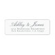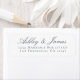 Chic, modern returadressetikett för bröllop med namn i handskrivet skript för off-black elegant calligraphy och snyggt typography på vit bakgrund. Lägg bara till namn och adress. Enbart designad för dig av Lycklig Dolphin Studio. Om du behöver hjälp eller matchande produkter kontaktar du oss genom vår chatta Vi är lycklig för att hjälpa dig att göra bröllop till den vackraste dagen!