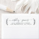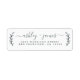 Chic, modern returadressetikett för svart och vitt bröllop med namn i handskrivet skript för svart elegant med snyggt av rustik löv mot vit bakgrund. Lägg bara till namn och adress. Enbart designad för dig av Lycklig Dolphin Studio. Kontakta oss på happydolphinstudio@outlook.com om du behöver hjälp eller matchande produkter. Vi är lycklig för att hjälpa dig att göra bröllop till den vackraste dagen!
