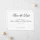 Be dina gäster att spara ditt bröllop-datum med den här eleganten svartvit design med elegant-skripttypografi. Perfekt för svart eller halvformellt bröllop. Kontakta mig om du behöver en anpassningsbar.