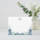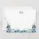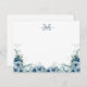 Elegant Script Blommigt Dusty Blue Monogram Note Card