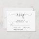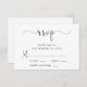 Elegant bröllop OSA kort med "osa" i ett kalligrafiskt skript för chic med dekorationer, enkel modern typografi och ditt namn gått med tillsammans av ett hjärta på baksidan.
