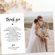 Tack för ditt vykort för gästerna i elegant bröllop. Vackert skript med ett förskrivet ändringsbart meddelande, namn och datum.