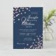 Elegant Script Bröllop Ro Guld Confetti Navy Blu Inbjudningar