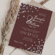 Elegant Script Bröllop Silver Konfetti QR Burgundy Inbjudningar