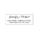 Skapa din egen anpassade, personliga, eleganta, stilrena, moderna, toppmoderna självbläckande returadressgummistämpel för all din bröllopsmail - Save the Date, RSVP, mottagningsinbjudningar och tackkort. Ange bara brudens och brudgummens / hustruns och makens namn och adress. Elegant returadressstämpel för användning på bröllop, bröllopsdag, födelsedag, brudshow, baby shower, högtider eller andra speciella tillfällen relaterade utskick. Perfekt för inbjudningar, kort, vykort, scrapbooks, presentkort, inslagningspapper och mer. Kommer med ett val av 9 bläckfärger. (VIKTIGT: Om din adress eller namn är längre än exempeltexten på denna gummistämpel, byt då till en större storlek på gummistämpeln så bör du kunna lägga en beställning