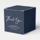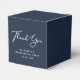 Elegantens blå studentfest med texten "Tack" i ett chic vitt skript och gradens datum namn och party i ett vanligt vitt bokstäver.