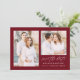 Meddela dina kommande bröllop med stil med vårt eleganta skript-foto "spara datum"-kort. Det eleganta "spara datum"-kortet visar 2 av dina förlovningsfoton med "spara datum" i ett vitt modernt kalligrafiskript mot en burgunderbakgrund. Anpassa det enkla "spara datum"-kortet genom att lägga till dina namn, bröllopsdatum och bröllopsplats. Det minimalistiska "spara datum"-kortet har en enfärgad burgunderbakgrund eller en färg du väljer på baksidan.