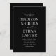 Den här eleganten och den moderna bröllopsinbjudan innehåller unika calligraphy-skript parade med snyggt. Systemet för svartvit färg är perfekt för alla evenemang, formella eller avslappnader.