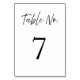 Välkomna gästerna till det bord som har utsetts med våra moderna och snyggt bröllop bordsnummer-kort. De här eleganterna har ett svart handskript och en klassisk text på en vit bakgrund och skapar dem perfekt för formellt bröllop. Den bästa delen? Du kan enkelt anpassa färgen på texten och bakgrunden så att den stämmer överens med ditt bröllop-tema. Gör din bröllopsmottagning oförglömlig med de här fantastiska bordsnumren. Beställ din i dag och lägg till lite elegans till din speciella dag.
