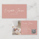 Elegant Script Chic Rosa Photo QR-kod Visitkort