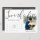 Elegant Script Classy Back White Bröllop Photo Save the Date. Spara datumkortet med enkel elegant. På kortets framsida finns en kalender för att markera bröllop-datum och namn för briden och trippen och utrymmet för parets foto. Baksidan av kortet har en svart bakgrund med andra bröllop-detaljer tillsammans med returadressen. Kortet kan anpassas genom att flytta den lilla kvadraten över siffrorna för att välja datum för bröllop. Om du vill ha fler anpassningar kan du kontakta mig på mypaperlove2021@gmail.com