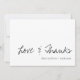 Elegant Script Classy Black & White Kärlek och tack för ditt kort. I designen finns Kärlek och tack skrivna i svart typsnitt tillsammans med namnen på de nya helgerna på vit bakgrund. Det här kortet är en del av en samling. Anpassa den genom att ändra namnen på bruden och trippen och bröllop-datumet. Om du vill ha fler anpassningar kan du kontakta mig på mypaperlove2021@gmail.com