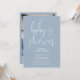 Denna dammiga blå eleganta script baby shower inbjudan kan anpassas med all din speciella firandeinformation och speciellt foto på baksidan. Designad av Thisisnotme©