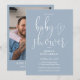 Elegant Script Dammig Blå Foto Baby Shower Inbjudningar