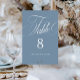Elegant Script Dusty Blue Bröllop Bordsnummer