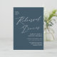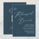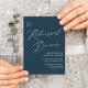 Elegant Skriptblått minimalistiskt QR-kodsrepeeringskort för middagsinbjudan. Fira din speciella dag med den här eleganten och ett vackert bröllopskort för att passa ditt speciella tillfälle. Alla texterna är i förväg ordnade så att du enkelt och snabbt kan anpassa dig med dina egna detaljer. Om du behöver ytterligare anpassning eller matchning av artiklar, var snäll och tala om för oss - vi skulle hjälpa kärlek.