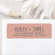 Chic, modern och enkel bröllop-returadressetikett med namn i handskript i off-black elegant på en dammig rosa bakgrund. Lägg bara till namn och adress. Enbart designad för dig av Lycklig Dolphin Studio. Kontakta oss på happydolphinstudio@outlook.com om du behöver hjälp eller matchande produkter. Vi är lycklig för att hjälpa dig att göra bröllop till den vackraste dagen!