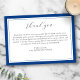 Ett vackert begravningstack för att du fick uttrycka din familjs tacksamhet. Designfunktionerna "tack" i skriptcalligrafi och anpassningsbar text. Byt lätt bakgrunden färg till kostym mot stil. Elegant och klassik - den här mallen gör det enkelt att tacka dina begravningsgäster för deras vänliga ord, kort och support. (Du kan också ta bort det inskrivna meddelandet och lämna blanketten tom för ett handskrivet meddelande.)