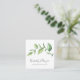 Fyrkantigt affärskort med en enkel design med en rustik vattenfärgsgrå, grön spirg med stora löv, över en vit bakgrund. Nedan står ditt namn i ett handskript tillsammans med titeln. På baksidan finns din kontaktinformation. Denna elegant botaniska utformning är underbar för många yrken.