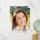 Elegant studenten tackar dig för ett kort med student-fotot överlagrad med "tack" i ett snyggt-skript och deras namn, skolår och klassår i enkel typografi. På motsatt sida lägger du till ytterligare ett foto, anpassar ett tackmeddelande och lägger till student namn i ett namnteckning skript.