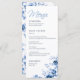 Elegant Script Fransk Blue Blommigt Toile Bröllop Meny