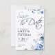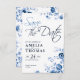 Elegant Script Fransk Blue Blommigt Toile Bröllop Spara Datumet
