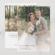 🎉 💍 tacka vänner och familj för att de gått med dig och firat din Big Day med det här moderna fotot-bröllop-tackkortet. Kortet har ett redigerbart meddelande på baksidan.